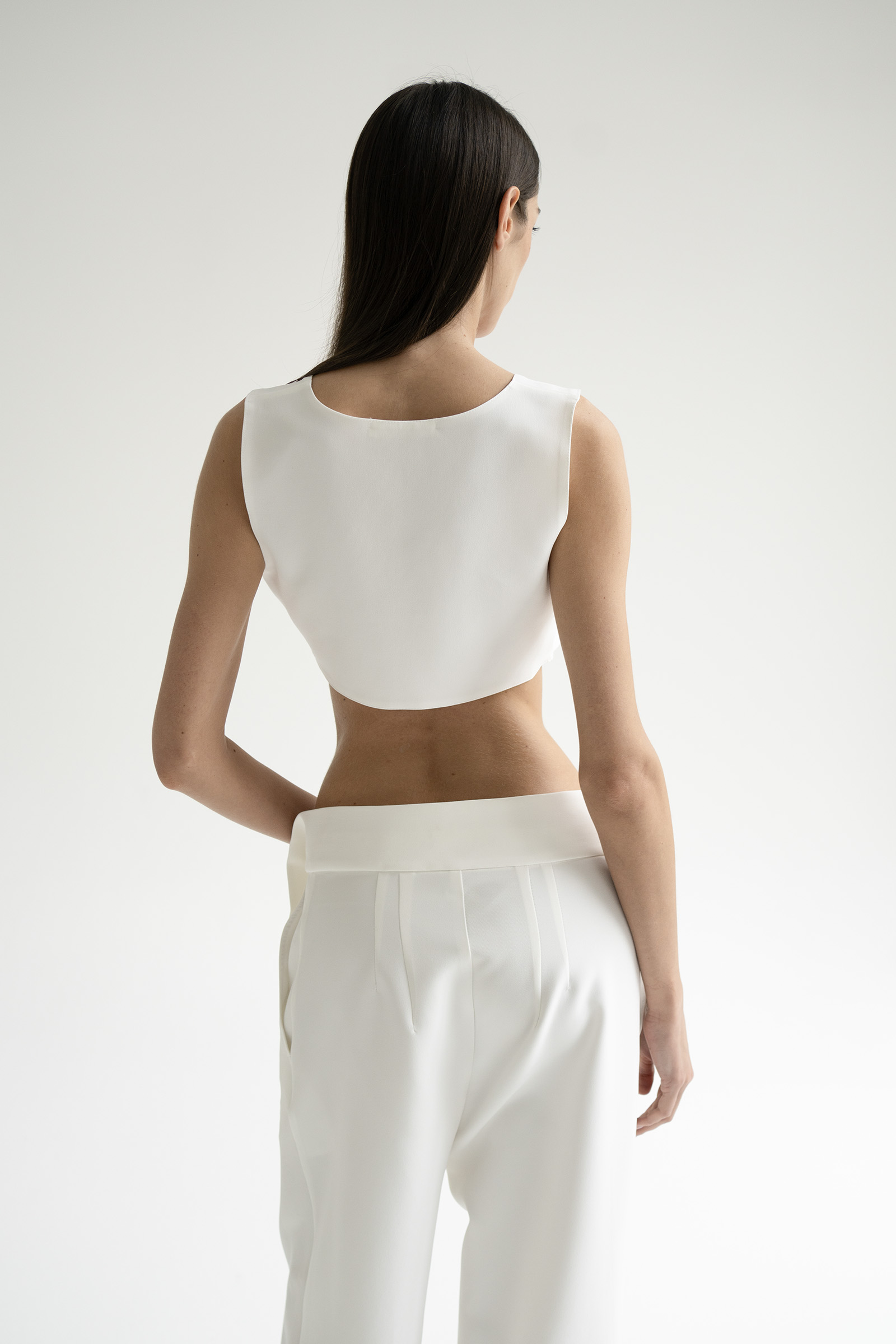 Лаконичный, укороченный топ костюмной ткани на основе вискозы. Топ идеально сочетается с жакетом и брюками Blanche из нашей коллекции.