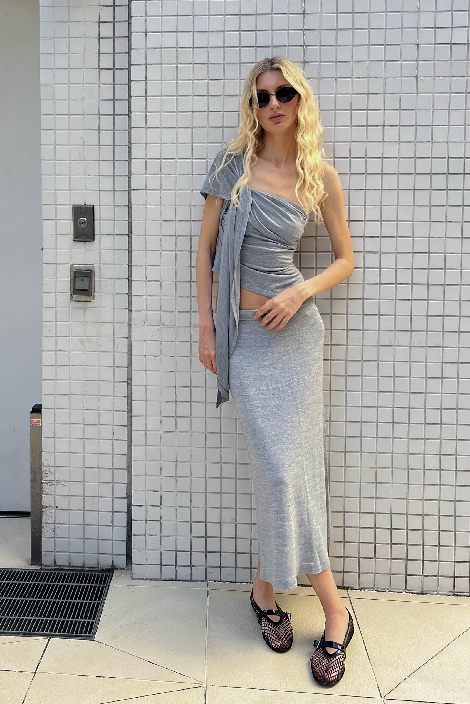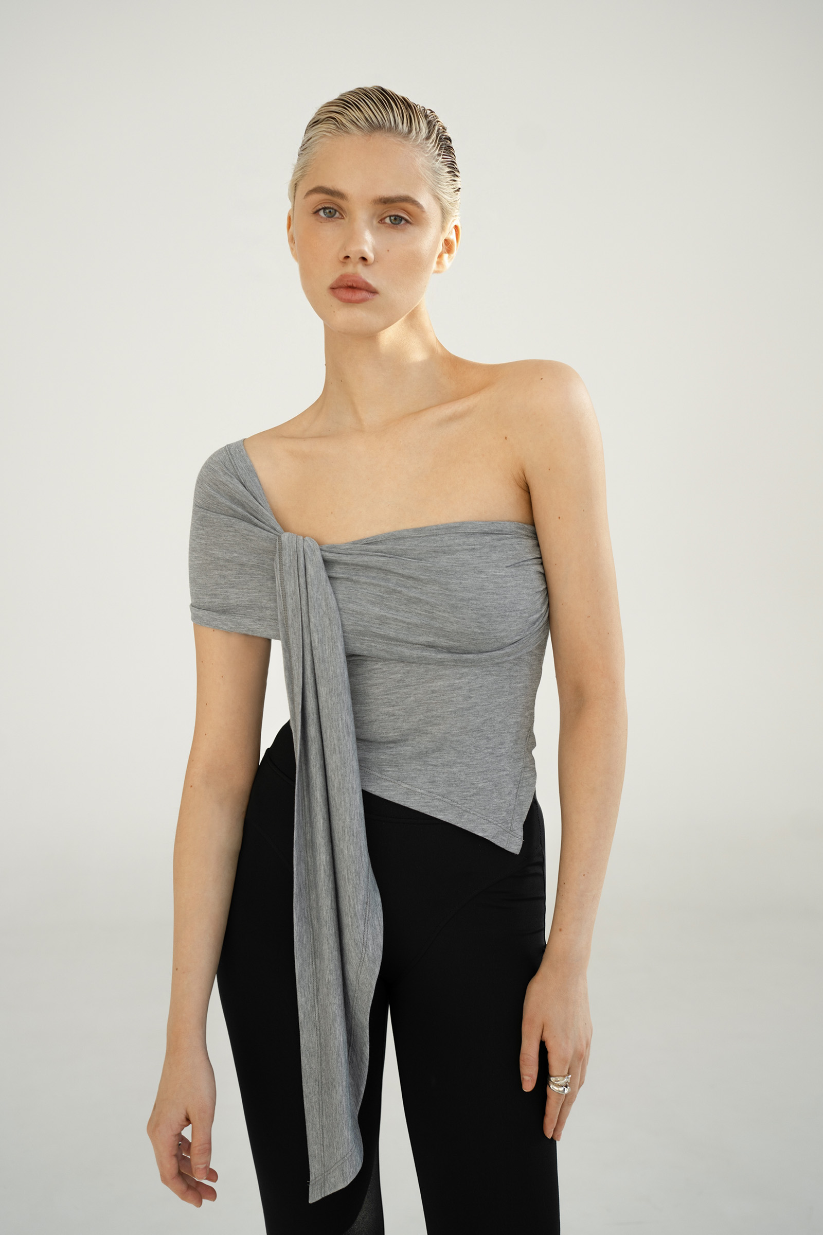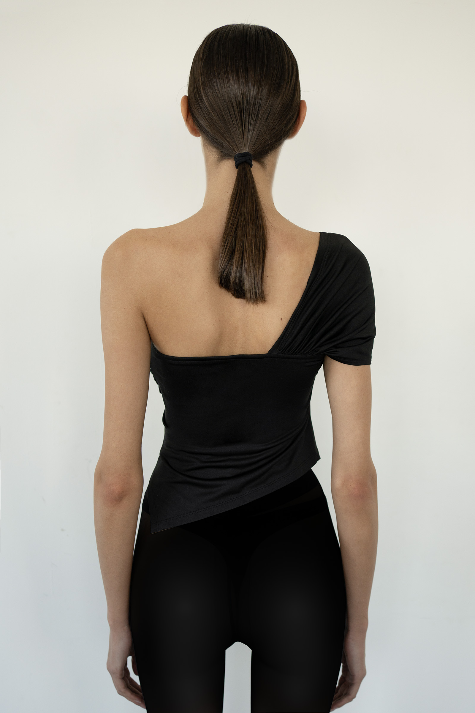 Асимметричный топ из трикотажа на основе вискозы.
